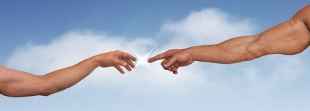God reaching out to Adam in the style of Michael Angelo's painting on the Sistine Chapel
