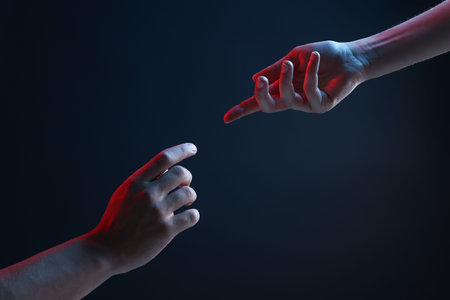 Close up of human hands reaching each other with fingers