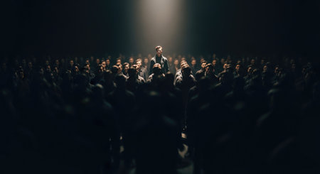 Businessman standing in front of a crowd of people. 3d rendering