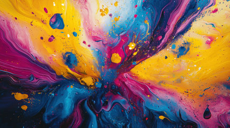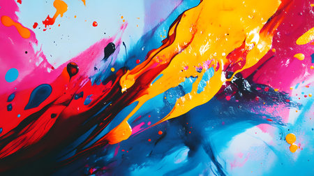 Energetic abstract background with colorful splashes and fluid shapes. Great for adding a lively touch to marketing materials, social media posts, and artistic visuals.