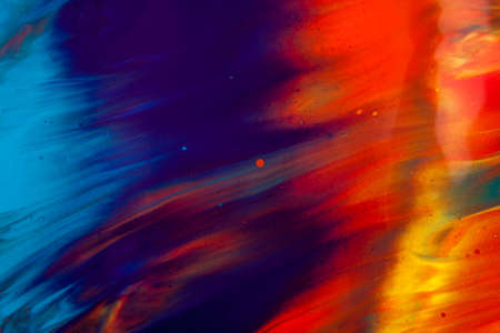 Abstract background of acrylic paint in blue red and yellow tones