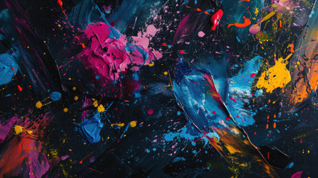 Abstract background of the maximalist design trend of the year in bright colors on a dark background. Strokes of paint. With Generative AI technology.