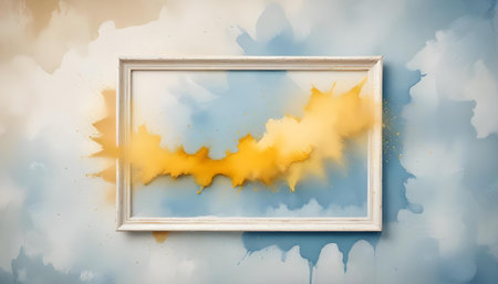 A captivating burst of colorful splashes surrounds an ornate golden frame set against a mesmerizing backdrop. This composition invites viewers to envision their own artistic creations.