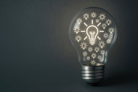 This image features a luminous light bulb set against a dark background, symbolizing technological innovation, creativity, and brilliance. The striking contrast highlights progress in science