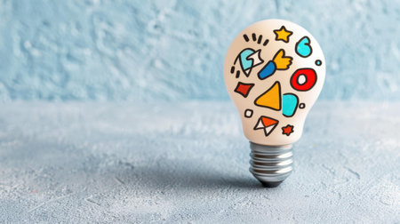 This vibrant light bulb bursts with creative concepts and business doodles, igniting inspiration on a textured white backdrop.