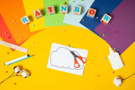 DIY children paper rainbow. Step-by-step instruction to create a rainbow of colored paper. Step 2