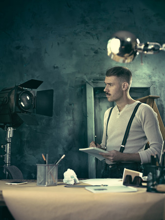 Hands of male photographer writing in his notepad