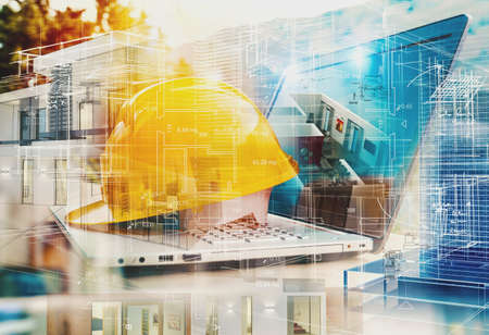 Laptop of a architect who plans a house