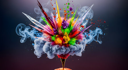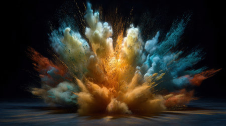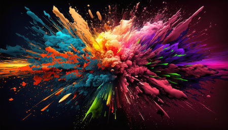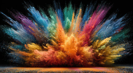 A vibrant explosion of colorful powder against a dark background, creating a dynamic display