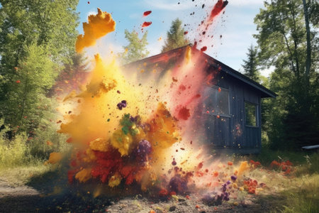 paint explosion caught mid-air in nature, created with generative ai
