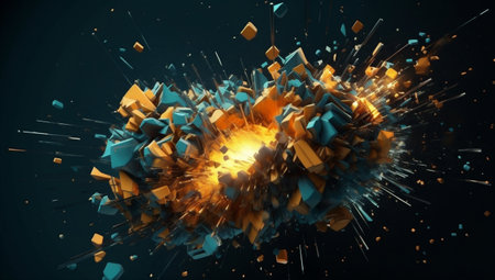 Abstract geometric explosion with polygon debris flying outward