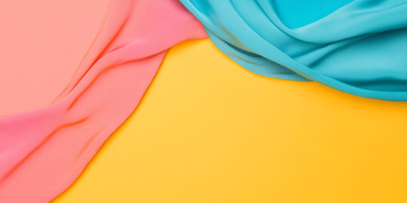 Brightly colored banner with vivid silk scarves and contrasting empty space creating a vibrant visual composition