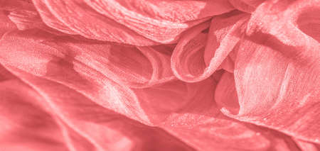 silk fabric. Texture of red wrinkled fabric. Red wrinkled fairy texture wavy surface, close-up, soft focus. background, pattern
