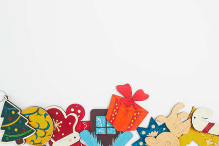 christmas decorations on white background isolate, copyspace, flatley