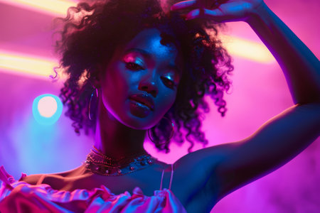 Woman dancing under neon lights