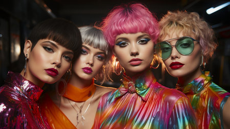 Fashion shot of beautiful young women with bright make-up and hairstyle,Generative AI