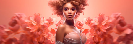 Portrait of a girl against a Background with peach accents adding a touch of glamor and sophistication. Generative AI