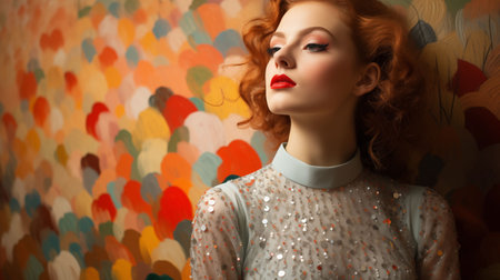 An AI generated illustration of a young woman in profile in front of a colorful wall