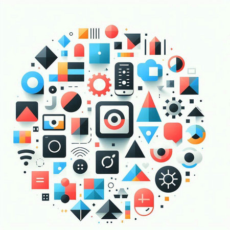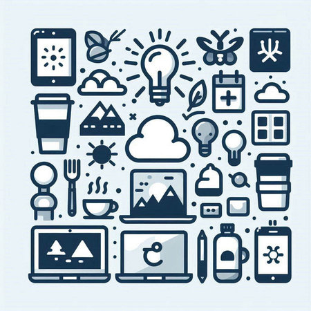 Collection of vibrant, flat-style icons featuring everyday objects and symbols.