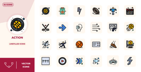Carefully curated 24 LineFilled vector icons for Action, featuring 128x128 PIXEL perfect resolution for consistent brand representation and user experience.