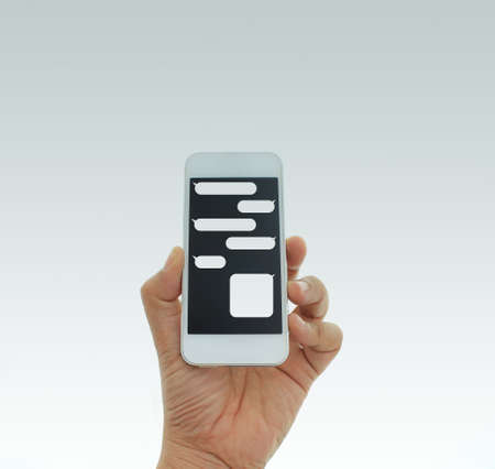 hand holding the smartphone with blank message template