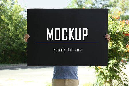 Mockup of business man using laptop screen for your advertising text message Laptop with blank screen on table compute work
