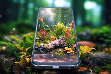 Blooming Enchantment: A Captivating Shot of a Person Mesmerized by Their Black iPhone 5 Amidst Vibra