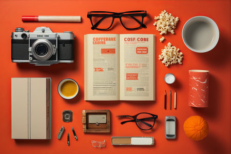 Cinematic Delight: an Artistic Flat Lay Arrangement Showcasing Movie Elements - AR 3:2