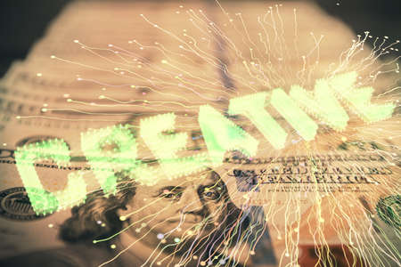 Double exposure of startup drawing over usa dollars bill background. Young business concept.