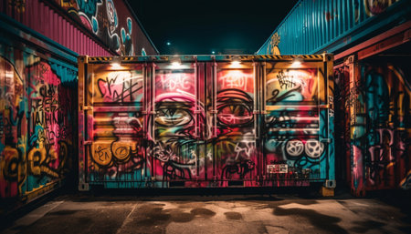 Illuminated city street, graffiti art, youth culture fun generated by artificial intelligence