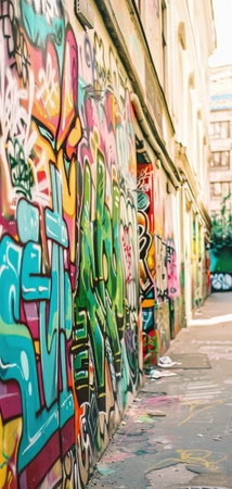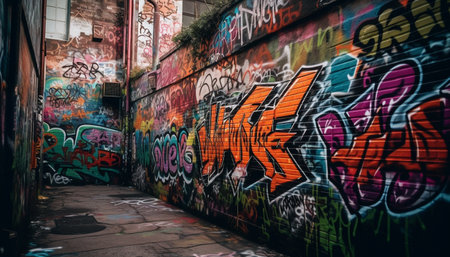 Colorful graffiti art covering the walls of an urban alley, showcasing street art and urban culture