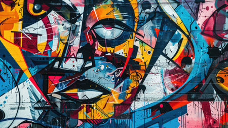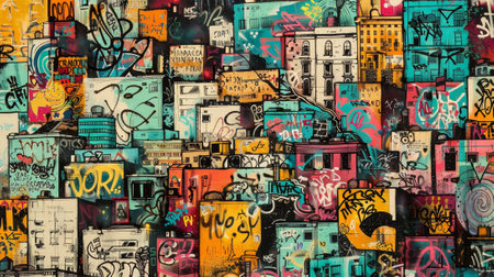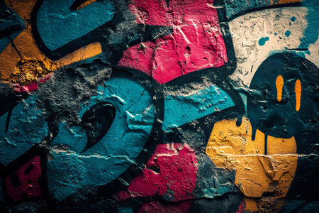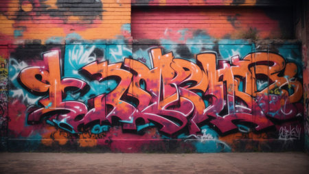 Vibrant urban street art, colorful graffiti pattern on concrete wall, showcasing artistic expression