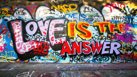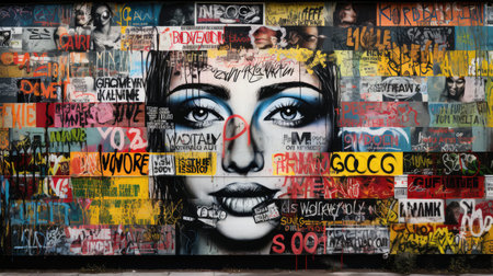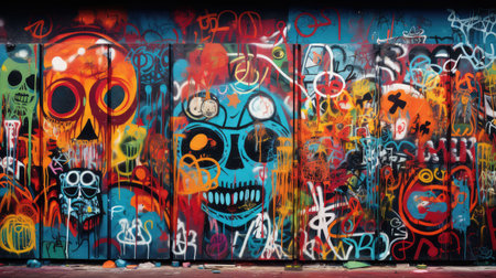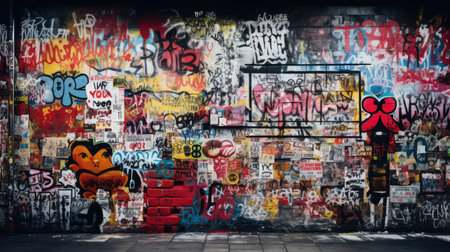 Graffiti wall background. An urban graffiti-covered wall, providing a vibrant and artistic backdrop for text or slogans. Copy space.