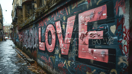 An illustration of a love symbol graffiti heart on a wall. - image generated with Generative AI