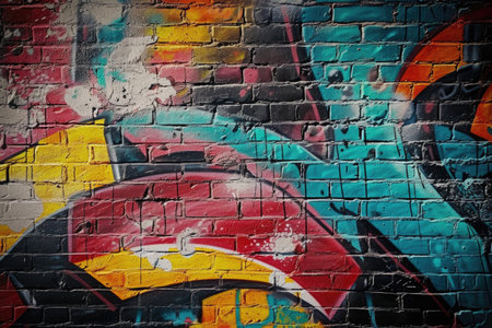 Colorful Street Art Graffiti on a Textured Brick Wall Background. High quality photo