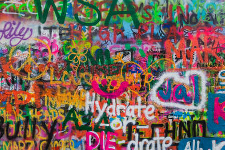 Graffiti on the wall of John Lennon in Prague - Czech Republic - abstract art background
