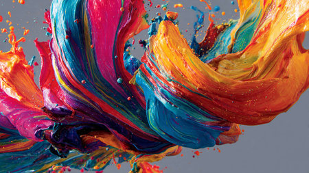 Vibrant abstract splash with paint and liquid movement. Great for expressive designs, artistic posters, and energetic branding.