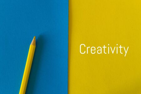 Creative word on a colorful explosion of pencils and paper against colourful background
