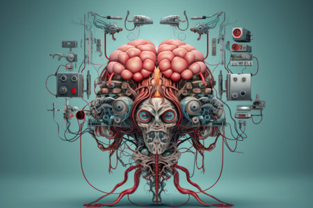 This abstract image showcases a unique depiction of human brain alongside a face, highlighting anatomy and cognitive connections through creative design.