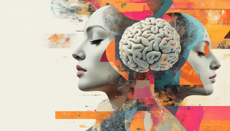 two human heads with thoughts and creative thinking abstract art of brain, created with generative ai
