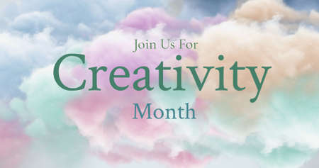 Digital composite image of creativity month text on pastel colored clouds in sky. creative and imagination.