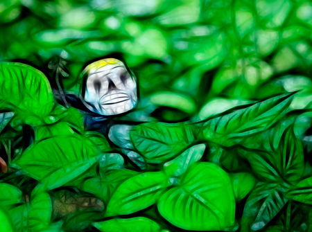 Moss-covered spiky creature in a lush forest. Funny monster. Concept of fantasy, mythical creature, enchanted forest, whimsical nature.