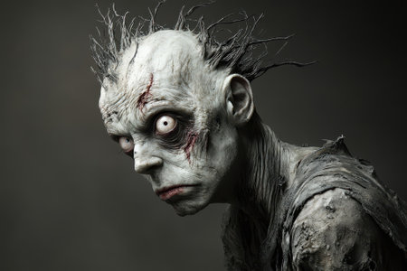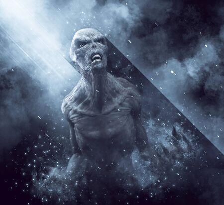Paranormal Scary Monster Horror Movie Character 3D Conceptual Art Illustration. Dark Vertical Portrait of Spooky Supernatural Demon of Fear. Horrible Nightmare Monster. AI Neural Network Art Work