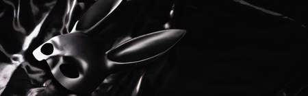 A woman in a black latex costume is sitting on the table and holding her hands.