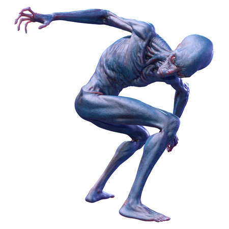 Boogeyman fantasy monster from childhood nightmares creeping while looking backwards. 3D illustration isolated on white background.