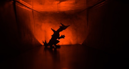 A horror concept of a scary portrait of a skull, demon figure. On a dark grunge background.