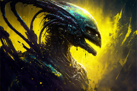An AI generated illustration of a monstrous alien creature on a dark background