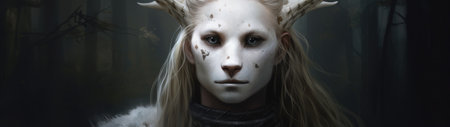 a person with white face and horns