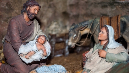 Baby Jesus, Saint Joseph and the Blessed Virgin Mary in Nativity Scene