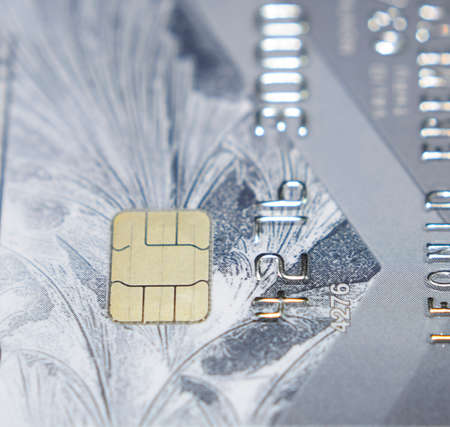 Four Premium Credit Cards with Microchip Closeup Photo.